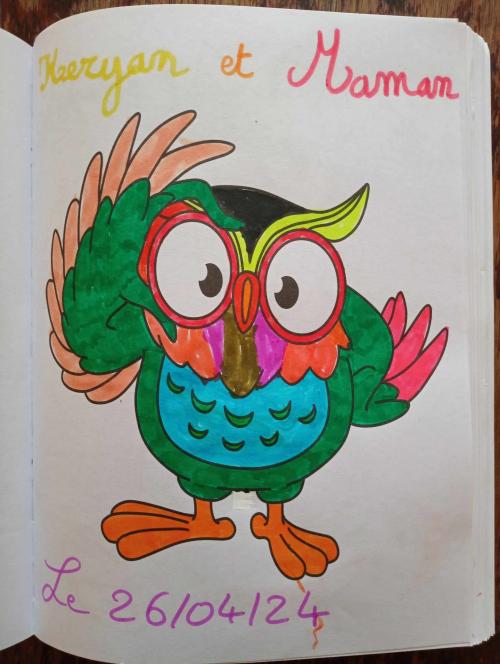 Voici un nouveau coloriage, réalisé à quatre mains avec Gremlin n°2. Il vient de son album Jumbo Colouring Book, acheté chez Action, il me semble...