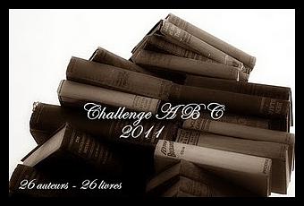 Le challenge ABC est un challenge bien connu de la blogosphère littéraire, et je compte participer pour la troisième année (déjà !) consécutive ! Souvenez-vous, pour la cession 2009, j'avais démarré en juin (et avais donc fait courir jusqu'en juin 2010) et j'étais arrivé au résultat de 24/26 ! Pour 2010, j'ai commencé comme tout le monde, en janvier, et ai donc du jongler entre la fin de celui de 2009 et le début de celui de 2010, ce qui explique sans doute mon résultat très moyen : 13/26. Pour 2011, je fais les choses bien correctement : je commence en même temps que tout le monde, je n'ai pas une moitié de la cession précédente à terminer et je m'inscris officiellement ! Fiou, pourvu que ça me porte chance !