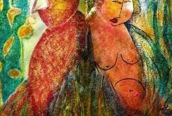Froid dans le grenier-atelier. La tempête siffle et Shakespeare se planque. Impossible de travailler en gestuelle, engoncé comme je suis dans dix pulls et quinze pantalons…. Alors dans un coin, poële au pied, essayons de miniaturiser les gestes. Un fantôme petit format en somme. Bien. Les idées ne fourmillent pas. Fais un oiseau, c’est ce qui te viens sans effort….. Alors je fais un oiseau… Et verso ? Bon…. Peut-être une femme … Une femme ? Oui, ça réchauffe…..Ah bon! Mais une femme comment ? Cherche….Tiens ! Regarde cet album d’estampes…. Une japonaise. Oui, pourquoi pas. Je m’exécute. Bien. C’est pas mal. Un tableau de plus pour l’exposition de février. Oiseau d’un coté, femme de l’autre… D’où çà sort…. Je cherche dans la bibliothèque et trouve enfin le conte japonais publié en 1994 chez Circonflexe : La Femme-Oiseau de Yagawa Sumiko…. Un souvenir du temps où je mangeais exclusivement des livres… Et c’est ainsi que l’inspiration vient…. en se caillant et en ayant lu! Voici donc la femme-oiseau recto puis verso.