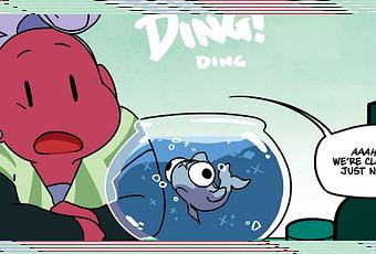 Même ses compagnons sont des archétypes du genre avec la fille sympathique un peu nerd et, celle mystérieuse mais sérieuse qui prend au sérieux la chose... sauf qu'il s'agit d'un ouvrier barbu qui va finir dans une tenue de Magical Girl si on en croit l'illustration sur la couverture. Et puis, si vous êtes comme moi et que vous aimez les animaux cartoon vous serez servis avec le hérisson en cage et surtout ce poisson qui nous rappelle l'inutilité de l'animal mais qui est pourtant bad-ass à souhait. Je pense que Silas, le poisson rouge, va être caution de plusieurs crises de rire. Tant à qu'à parler des personnages, je n'oublierai pas la patronne d'Amie qui est un personnage assez drôle et extravertie.