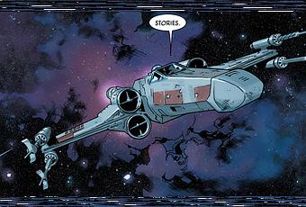 Aaron propose avec la série Star Wars un véritablement divertissement. Du coup, la narration est plutôt décompressée. Ce n'est pas bien grave, je pense, vu que cela permet de faire interagir les personnages entre eux. La scène avec Han et Leia est assez excellente. Han tente de convaincre Leia que Sana ment alors que la Princesse fait comme si elle n'en avait rien à faire.