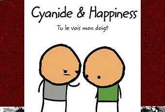 Cyanide & Happiness est un phénomène du Web mondial, existant déjà depuis 10 ans. Quatre auteurs (Kris Wilson, Rob DenBleyker, Matt Melvin, Dave McElfatrick) publient au moins un strip par jour. Le mot d’ordre : il n’y en a aucun. Pas de personnage central, un trait ultra minimaliste, sans décor, mais en revanche un humour noir.