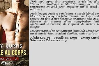 Retour dans la série Alpha OPS avec " Fouille au corps " d'Emmy Curtis . Et je dois dire que cette fois-ci, ma préférence va pour ce tome que je trouve très différent du précédent. Un Excellent Romantic Suspens à vous couper le souffle !