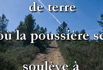 le chemin de terre, où la poussière se soulève à chaque pas, commence à se confondre avec les rochers