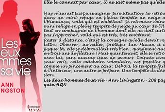 Je remercie les éditions Harlequin France pour l'envoi de ce service presse Encore une autre lecture dans la collection Harlequin HQN qui a su agréablement me surprendre. " Les deux hommes de sa vie " d'Ann Livingston. Certes c'est un petit récit mais avec un mélange très attrayant de Passion, d'Actions et de Suspens. Quand une mission assez simple prend une toute autre tournure, cela donne deux agents qui se retrouvent coincés dans un abri le temps du passage d'une grosse tempête de neige. C'est ce qui arrive aux agents May et Ian. Bien que la mission soit compromise, jamais May ne doit dévoiler sa véritable identité et ce pourquoi elle est ici. Mais comment résister à cet homme si charmant ? May arrivera-t-elle à bout de sa mission ?
