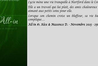 Je remercie les auteurs pour l'envoi de ce service presse Un premier opus qui m'a agréablement surprise " All-in " d'Alex & Maxence D. Je ne suis pas fan des histoires de triangle amoureux ou les histoires d'adultère. Mais là pour le coup, j'avoue que j'ai passé un très bon moment de lecture ...