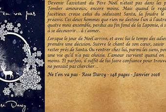 Je remercie l'auteur pour l'envoi de ce service presse Une plume que j'ai découvert grâce à son livre, " Deuxième chance " () et qui m'a beaucoup plu. Et lorsque j'ai eu l'occasion de lire une autre de ses œuvres, et bien cette fois-ci je suis tombée littéralement sous le charme de l'univers féerique de Rose Darcy avec " Ne t'en va pas ". Une histoire courte mais Sublime. Vous ne verrez plus le Père Noël du même œil ...