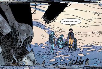 La partie graphique confirme tout le bien que je pense d'elle. Dave Taylor s'est parfaitement acclimaté avec la série, et livre un travail propre, et plutôt précis. Il n'hésite pas à ajouter des détails dans ses décors et dans ses personnages, même si ces derniers manquent parfois d'émotions. Le travail de Jordie Bellaire est toujours de bon niveau, comme souvent avec elle. Sa colorisation aide d'ailleurs à donner de l'amplitude à certains scènes.