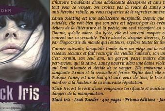 Je remercie Prisma éditions pour l'envoi de ce service presse Mon premier New Adult dans la romance F/F et j'avoue que l'auteur Leah Reader a mis la barre très haute avec " Black iris " . Ce livre est très différent de ce que j'ai l'habitude de lire. Je suis encore sous le choc ! Il est tout simplement époustouflant ! Bref une tuerie !