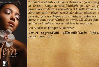 Je remercie les éditions VFB Editions pour l'envoi de ce service presse Un récit des plus poignants et vifs j'ai pu découvrir. Un auteur qui change de registre en nous offrant une époustouflante histoire. Un premier opus très réaliste qui ne vous laissera pas indifférent et dont vous n'allez pas oublier de sitôt, " Yem Le Grand Rift " de Gilles Milo-Vacéri.