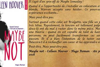 Je remercie les éditions Hugo Roman pour l'envoi de ce service presse Un spin-off que j'avais hâte de lire " Maybe not " de Colleen Hoover. Et encore une fois j'ai été littéralement conquise par ce sublime petit bijou ! Une petite merveille ultra sexy, addictive et marrante à souhait ... Enfin on sait ce qu'il s'est passé entre Warren et Bridgette ! Et accrochez-vous car cela en vaut le détour !
