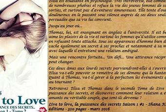 Une suite que j'avais hâte de lire et je ne fus pas déçue. Retour avec Élisa et Thomas dans " Live to love, la puissance des secrets ... " de Shana Keers. Une suite plus aboutie et plus intense avec enfin les réponses tant espérées ...
