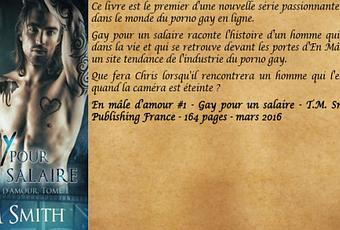 Je remercie les éditions Juno Publishing France pour l'envoi de ce service presse Une lecture qui m'a prise au dépourvue. Jamais je n'aurai cru lire un roman abordant ce genre de sujet. Mais j'ai été curieuse de voir ce que cela allait donner. Au final, je n'aurai pensé apprécier autant ma lecture... Une agréable surprise " Gay pour un salaire ", premier opus de la série En mâle d'amour de T.M. Smith. Suite à une erreur, Chris a tout perdu. Sa famille, ses amis et surtout sa petite amie. Le seul qui ne l'a pas abandonné c'est son meilleur ami Michael. Après avoir touché le fond, il part s'installer chez Michael et son compagnon Max. Sans emploi et ne voulant plus être une charge pour ses amis, il décide de postuler auprès d'une entreprise qui recherche de jeunes talents pour un emploi très particulier en tant qu'acteur porno gay.