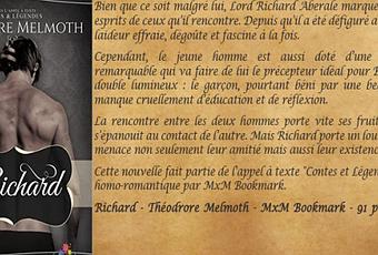 Retour dans l'appel à texte pour le prochain recueil de " Contes et Légendes " version homo-romantique chez MxM Bookmark. Et encore une fois, je ne fus pas déçue de ce merveilleux conte revisité de Charles Perrault. " Richard " de Théodore Melmoth. Une sublime nouvelle qui se déroule au XiXème siècle en Angleterre alors que les relations homosexuelles étaient considérées comme immorales et un péché aux yeux de la société. La rencontre d'un Lord défiguré et blessé par cette guerre contre les Napoléoniens et pourtant cultivé ne possédant aucun bien, et du fils d'un comte qui n'a connu qu'une vie surprotégée, . Richard va devenir le mentor de Benedict en quelque sorte. Une certaine amitié qui s'installe et qui va prendre de l'ampleur. Car Richard est attiré par son élève mais il sait que cela est interdit. Tandis que Benedict est troublé par le comportement de son mentor. Une relation périlleuse et interdite. Mais la puissance et l'intensité de leur Amour pourrait tout changer ...