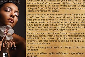 Je remercie VFB éditions pour l'envoi de ce service presse Après avoir fait connaissance de Yem, après avoir été scotchée par son histoire et ce qu'elle a du subir dans le premier opus " Le grand Rift ", il me tardait de lire ce que l'auteur Gilles Milo-Vacéri allait nous réserver dans le grand final avec " La liberté ". Et encore une fois, je fus éblouie par cet épatant chef d'œuvre ... Retour à Djibouti où nous retrouvons Yem, qui après avoir survécu à la traversée du Grand Rift, va commencer une nouvelle vie. Mais pas des plus belles. Il lui faudra beaucoup de courage pour faire face à des situations des plus déroutantes si elle veut trouver sa Liberté. Mais sa détermination et sa force de caractère va l'aider à tenir bon. Mais sa rencontre avec Marc, un sergent en mission va bouleverser sa vie à tout jamais ...