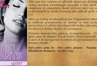 Suite de " Pari entre ami " de Pauline Libersart où nous retrouvons le sexy Josh l'artiste sculpteur et l'agaçante Ashley le professeur d'université dans " Pari entre amants". Une suite totalement différente du précédent tome où vos nerfs vont être mis à rude épreuve. Josh et Ashley s'aiment. C'est un fait indéniable. Mais leur relation à longue distance est un peu dure à supporter. Josh décide donc de quitter San Francisco pour emménager à New York avec sa moitié. Mais tout ne se passe pas comme prévu. Entre Josh et ses petites manies et Ashley qui ne pense qu'à sa carrière, vivre ensemble s'avère être plus compliqué qu'autre chose. Et les choses se compliquent avec l'arrivée de l'ex-fiancé d'Ashley ... Josh et Ashley vont devoir s'adapter et faire front ensemble pour surmonter tous ces obstacles ...