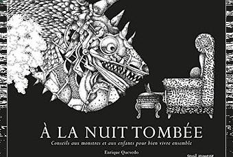 Synopsis : À la nuit tombée, quand on est un enfant, il n'est pas toujours simple de détourner l'attention d'un monstre dans un long corridor sombre ou encore d'éviter celui qui veut sortir du placard de notre chambre lorsqu'on dort tranquillement... Par ailleurs, à la nuit tombée, quand on est un monstre, il n'est pas toujours facile de chasser les enfants qui envahissent le parc où l'on se repose ou de se cacher sous l'escalier lorsqu'un petit humain en dévale les marches au moment même où l'on sort rejoindre quelques monstrueux mais. Heureusement, les conseils d'Enrique Quevedo sont là pour apprendre à chacun à faire face à de telles situations ! Énigmatique et truffé d'humour, cet album en clair-obscur s'adresse aussi bien aux enfants les plus turbulents qu'aux monstres les plus sages ! Il se présente comme un manuel riche en conseils pratiques pour une plus saine cohabitation entre les deux espèces précédemment citées. Magnifique hommage à l'univers peuplé de monstres de Maurice Sendak et aux minutieux dessins à la plume noire d'Edward Gorey, cet ouvrage convie le lecteur à entrer dans un univers où l'ordinaire côtoie l'extraordinaire et où rêve et réalité se confondent à la perfection.