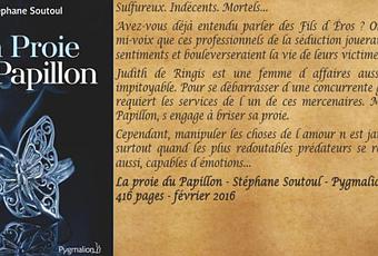 Je remercie les éditions Pygmalion pour l'envoi de ce service presse Une magnifique couverture. Un résumé qui a attisé ma curiosité au plus haut point. Et vous savez quoi ? L 'auteur nous offre un nouveau genre aux antipodes de ce que l'on a l'habitude de lire dans le genre Romantic Suspens. Je n'aurai jamais cru cela possible, un Thriller d'Exception ! " La proie du Papillon " de Stéphane Soutoul est juste DÉ-MEN-TIEL !