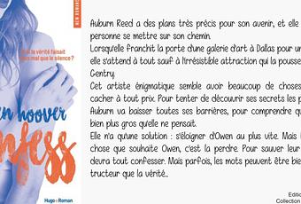 J'ai trouvé ce roman un peu différent des autres romans de Colleen Hoover, je ne saurais pas expliquer ce qui se différencie de cette histoire. Mais encore une fois, elle a réussi à me transporter dans un univers parallèle et cette fois, elle va s'intéresser à l'art. Je ne m'attendais absolument pas à découvrir toutes ces merveilles et aborder le thème des confessions, en utilisant de réelles confessions est à la fois magnifiques et terribles. Je crois qu'elle a cette capacité à donner vie à un univers inédit, en s'appuyant sur des émotions fortes et je peux vous assurer que c'est un vrai ascenseur émotionnel.