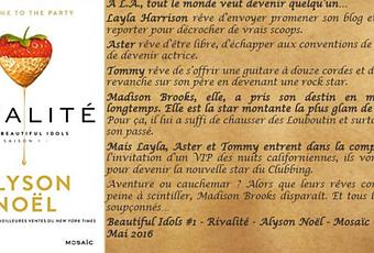 Je remercie Christel des éditions Mosaïc pour ce service presse Une auteur très connue dans le genre Fantastique Young Adult. Et cette fois-ci Alyson Noël change littéralement de genre dans un New Adult très prometteur plein de strass et de paillettes dans un décor Hollywoodien où tous les coups sont permis pour être sous le feu des projecteurs. " Rivalité ", premier opus de la saga Beautiful Idols.