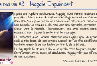 Je remercie Passions Éditions pour ce service presse Une plume que j'ai connu grâce à son livre Et maintenant, l'auteur Magalie Inguimbert est de retour avec sa nouvelle série " Si seulement... Un jour, on se retrouvera... " et que j'avais beaucoup apprécié. " Je rêve ma vie " tout en changeant de registre. Un nouvel univers très intéressant... Magdy est une jeune femme qui commence une nouvelle vie aux États-Unis pour réaliser son rêve, devenir une danseuse professionnelle. Elle a tout prévu, un appart, un boulot et une école de danse. Sa nouvelle résolution, Sa carrière passe avant toute chose. Les relations amoureuses, c'est finit elle en a assez donné ! Elle fera de très belles rencontres. Mais c'est surtout sa rencontre avec Landon, le chanteur d'un groupe rock qui va bouleverser sa vie d'une manière inattendue.