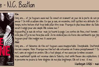 " Be Mine " de N.C. Bastian c'est l'histoire de Kim et Alex qui se retrouve après une séparation de cinq ans. Des retrouvailles sous hautes tensions puisque Kim a quitté les États-Unis du jour au lendemain sans explication.