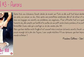 Je remercie Passions Éditions pour ce service presse Suite et fin de " Sur le fil " d'Aurora. Et je dois dire que ce final est déroutant et stupéfiant. L'auteur a réussit son coup car je ne m'attendais pas mais pas du tout à cela... Nous retrouvons nos héros Anouk et Owen là où nous les avons laissés. Et il aura suffit que le passé d'Anouk refasse surface pour que tout bascule. Et vu son état de santé très précaire, elle va se retrouver dans une situation incontrôlable. Mais fort heureusement, elle peut compter sur Owen et son frère Jessie pour leur grand soutien. Mais cela ne suffit pas et Anouk n'a d'autre solution que fuir encore une fois mais tout ne se passe pas comme prévu...