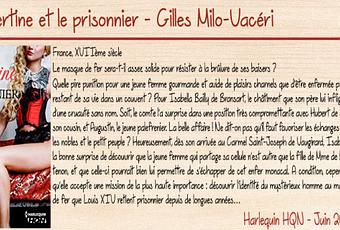 Je remercie Harlequin France pour ce service presse Avec une couverture et un résumé aussi attrayant et séduisant, j'ai été curieuse de savoir ce que l'auteur Gilles Milo-Vacéri allait nous réserver. Et bien pour une romance historique érotique, " La Libertine et le prisonnier " est une très grande surprise. Je découvre une nouvelle facette de l'univers de l'auteur car je ne m'attendais pas à ce genre de lecture... Avec une plume fluide, prenante et palpitante, l'auteur revisite l'histoire du Masque de Fer d'une manière bien originale... Une héroïne impressionnante qui vous réserve bien des surprises. Isabelle Bailly de Bransart. On s'attache facilement à elle. Une jeune femme audacieuse et aventureuse qui n'a pas froid aux yeux et qui possède une grande âme et qui est dotée d'un grand courage. Une héroïne qui a fait des erreurs mais qui ne se laisse pas abattre pour autant.