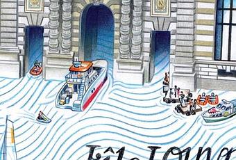 Partons à la découverte du Musée du Louvre à travers ses touristes transformé pour les besoins en île. La couverture invite déjà au voyage, l'entrée au musée se fait par bateaux et autres moyens de locomotion" marins et comme dans tout pays pour entrer sur le territoire du Louvre mieux vaut avoir son passeport, une fois le sésame en main c'est parti pour la visite. Première halte, première image et premier ressenti: le hall d'entrée sa foule et son mélange de langues.