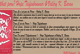 Un duo d'auteurs que je connais très bien et j'apprécie pour leur univers décalé et à part. Valéry K. Baran & Hope Tiedenbrunner. Et encore une fois, elles ne nous déçoivent avec ce recueil de trois nouvelles. Un titre accrocheur. Une sublime couverture. Trois petites histoires qui tournent autour d'un thème très spécial : Le Porno en lui-même qui est abordé d'une manière bien atypique...