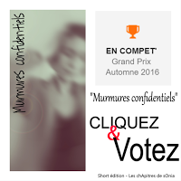 Vous avez jusqu'au 31 août 2016 pour voter et je saurais ensuite, si Murmures confidentiels est retenue pour aller en final !