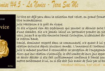 Je remercie les éditions Marabout pour ce service presse Retour dans la saga La Soumise de Tara Sue avec " La novice ". Un sous tome très surprenant. Car l'auteur nous fait découvrir une nouvelle facette de l'univers du BDSM. C'est toujours aussi fascinant mais dans un autre temps déroutant... Moi qui pensais lire un faux copié-collé des premiers tomes de La Soumise (l'histoire de Nathaniel et Abby) et bien je suis heureuse de m'être lourdement trompée. Car il faut que vous le sachiez, j'en ai lu des romans BDSM et je peux vous certifier que dans cette saga aucun tome ne se ressemble. L'auteur touche à chaque fois un aspect bien précis du BDSM et elle arrive toujours à m'impressionner et à se démarquer.