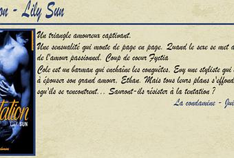 En bref, " Tentation " de Lily Sun est une lecture fort sympathique et sans prise de tête où l'on pas un bon moment de détente. Mon seul petit reproche, j'aurai voulu un peu plus de pages car la fin arrive bien trop vite à mon goût. Mais d'un autre côté, même si j'avais deviné comment tout cela aller se terminer. Je dois dire qu'en à peine 150 pages, l'auteur arrive à nous redonner le sourire avec le parfait mélange d'Humour, de Passion et de Sensualité.
