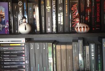 Ce matin, j’ai eu une envie soudaine de ranger ma bibliothèque par couleur. Allez savoir pourquoi… Après une heure de rangement, voici le résultat ! On ne dirait pas qu’il y en a autant mais je vous assure que lorsqu’ils sont étalés sur le divan et que j’ai tenté de les ranger, j’ai cru ne jamais avoir assez de place !