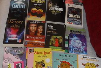 Et puis, vu les prix... Pour 17 ouvrages et en comptant les frais de port, ça me fait un prix de revient par livre de 1€84 ... Ça vaut le coup, non ? Bon, oui, je sais, je n'ai plus du tout de place dans ma bibliothèque ni dans les deux cartons devant. Ça déborde, ça hurle sa protestation mais, que voulez-vous ? J'ai beau trop en avoir, je continue toujours à en acheter... -_o_-