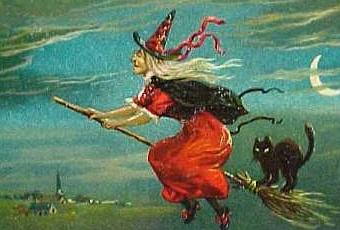 La Befana est prête à assurer sa tournée, lunettes et bonnet d'aviateur sur la tête, elle prend son envol.