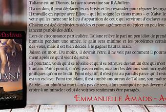Un très bon début pour " Taliane ". Emmanuelle Amadis a su faire preuve d'originalité. Je n'ai jamais rien lu de tel. J'ai passé un excellent moment. Mais avec cette fin à vous laisser perplexe il me tarde de lire la suite à venir.