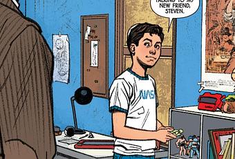 Après cette bataille psychique riche en émotions, Lemire embraye dans ce numéro vers la croisade de Moon Knight contre Khonsu, tout en s'intéressant à l'enfance de Spector. Ce dernier point est très bien abordé par l'auteur, explorant une facette du personnage jusqu'à aujourd'hui floue et donc vraiment intéressante à découvrir. On remarque alors que les germes de la schizophrénie de Spector remontent à bien plus loin, tout comme les vicieuses attentions de Khonsu. Il est d'ailleurs assez touchant de voir la relation entre Marc et son père, apportant une dimension intime au récit. Certes, on n'apprend pas énormément de choses sur ce dernier, mais les expressions faciales et les gestes laissent apercevoir qu'il est tout simplement inquiet pour son fils, et souhaite mobiliser son aide pour améliorer son état. Les dialogues de Jeff Lemire sont toujours aussi très bien écrits pour décrire finement cette relation.