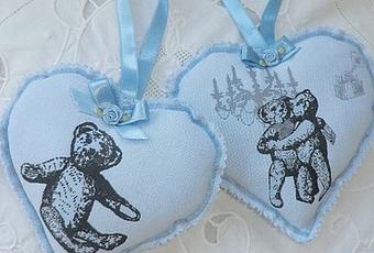 l'autre suit les motifs du papier peint : des oursons coupés en plein milieu par les