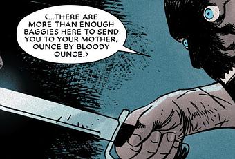 Teodore Zarco est d'ailleurs beaucoup plus mis en avant dans ce numéro. Le leader du Black Knife est montré comme un monstre sans aucuns scrupules. Développer cette image, d'une part, à travers les rumeurs courants dans les quartiers et, d'autre part, à travers l'exposition de moments sordides avec le psychopathe est une très bonne idée de la part de l'auteur.