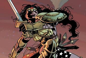 Les Kandoriens sont tous des barbares et il faut tous les tuer. Wonder Woman les coupe en morceau devenant un symbole d'une femme puissante imaginée par deux pervers. Je suis désolé mais j'ai vraiment l'impression que voir une femme découper des musulmans Kandoriens en morceau leur donne une érection. Ce n'est pas une femme forte comme Miller pouvait écrire Martha Washington ou Elektra. Et encore, Andy Kubert donne de la classe au personnage, un autre dessinateur aurait pu très vite dévier et donner l'impression de voir une de ses femmes en bikini sur les vidéos de fusil d'assaut. Et c'est encore plus visible avec la back-up story sur Bruno - la pire création de Miller et, peut-être bien de DC - avec cette femme à moitié nue portant un prénom et une coiffure de mecs et des croix gammée pour cacher seins et fesses. Le personnage affiche sans aucune subtilité qu'il est méchant comme si les actes ne suffisaient pas. Mais les croix gammée font porter l'attention sur les seins et les fesses et ça devient dérangeant. Et puis, l'histoire de cette histoire est vraiment sans subtilité bien loin des talents respectifs des deux auteurs.