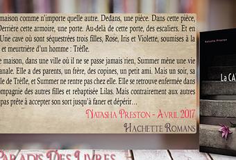 " La cave " est un Young Adult qui est à découvrir... Un thriller particulier qui ne vous laissera pas indifférent. C'est mon premier roman de Natasha Preston et cela ne sera pas mon dernier.