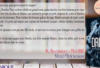 Avec une plume qui est toujours phénoménale, percutante et addictive, K. Bromberg prouver avec une grande aisance son immense talent. Oh oui, il faut bien le reconnaître, elle fait partie de ces groupes d'auteurs qui possède ce don particulier pour choisir leurs mots et jouer à la perfection sur les émotions qu'ils arrivent à vous briser le cœur et vous toucher en plein cœur en même temps. Une fois n'est pas coutume, elle aborde des sujets sensibles et bien réelles avec un naturel désarmant. Elle nous parle de la famille, de l'amitié, des priorités, des sacrifices, de souffrance et d'amour. Une intrigue qui est parfaitement construite. Des émotions qui sont si cruellement authentiques. Des scènes exquisément torrides pour notre plus grand plaisir. Un ton mordant et un rythme transcendant où l'on plonge dans cette histoire imparfaitement parfaite et on se laisse immerger par ces sensations bien malgré nous.