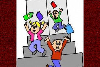 Cahiers et livres rangés, l'heure a sonné, la clé s'est tournée. Vive les vacances d'été, l'école est bel et bien terminée. Le bilan de l'année ? Plus la peine d'y penser. Notes et appréciations, devoirs et corrections, leçons et préparations, en un coup de baguette magique, se sont envolés, c'est magnifique. Feuilles aux vents se sauvent à travers champs, l'école buissonnière ne fait plus de manière. Écoliers enchantés crient et chantent sans se priver, à eux la liberté, les jeux et la télé, les belles soirées d'été, plus d'heure de coucher, de devoirs surveillés, d'horaires à respecter, bonheur non dissimulé.