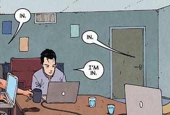 En plus d'aimer parler de plein de choses, Ales Kot sait aussi être original. Il le prouve en commençant son histoire sur la couverture, où on suit un dialogue entre deux des principaux protagonistes. Les deux amoureux ont une discussion face aux étoiles, partageant leurs sentiments et surtout leurs doutes, pour ce que arrivera le lendemain. Ce numéro faisant 50 pages, l'auteur va prendre son temps pour démarrer l'intrigue et va vraiment poser le rythme, en nous présentant les personnages principaux. Ils sont au nombre de 4 : 3 hackeurs, Elena, Nick et Baldwin, ainsi qu'un scientifique nommé M. Akio. Et leurs chemins vont se croiser.