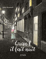 Quand il fait nuitAkiko MiyakoshiSyros Jeunesse32 pages2016Sur le chemin du retour à la maison, un petit lapin, dans les bras de sa maman, observe sa ville. Il voit à travers les fenêtres des maisons que chacun s'affaire différemment. Et ensuite, quand il est couché, il s'interroge: est-ce que tout le monde est maintenant dans sa maison et dans son lit?