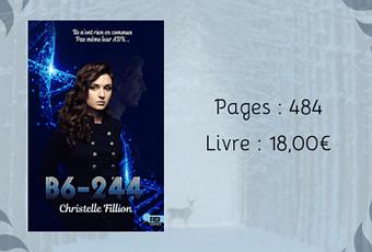 Christelle Fillion" title="B6-244 > Christelle Fillion" /> La jeune infra-sapiens ne connaissait personne en ville. Elle n'avait pas d'amis, nulle part où aller, et Dimitri comptait bien profiter de cet état de fait pour la retenir prisonnière. Finalement, la situation s'avérait simplisme. Elle n'aurait de repos que le jour où elle déciderait de quitter Frontverde.Merci aux éditions Reine-Beaux pour leur confiance.