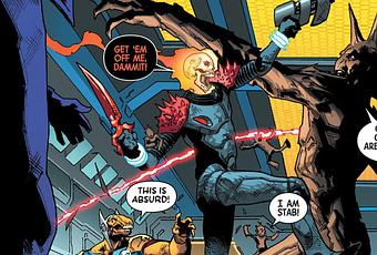 Donny Cates arrive à nous surprendre, non pas avec l'apparition d'un personnage très connu sur la dernière page, mais sur l'orientation de son histoire. Nous avions vu lors du précédent épisode une attaque terroriste qui semblait avoir emporté la quasi totalité des grandes personnalités de l'univers cosmique de Marvel. On pensait alors que seuls les nouveaux Gardiens avaient été épargnés. Sauf que dans ce numéro, on se rend compte que ce n'est pas le cas et Cates part plutôt du principe que si une poignée de personnages ont pu s'en sortir d'autres ont réussi à le faire. La narration de ce moment est plutôt visuelle avec des marques sur le visage alors que l'action s'est déroulée hors-champ. Et c'est une bonne idée puisque cela permet de faire avancer l'intrigue à un rythme décent.