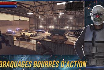 - Renforcez votre personnage : créez votre braqueur impitoyable ! Vous voulez incarner un clown tueur ? Faire partie des forces spéciales ? Ou peut-être devenir un vilain gangster ? Obtenez des masques, des gilets pare-balles et de super costumes. Avec ses graphismes en 3D de haute qualité et son style de jeu immersif, ce jeu de tir à la troisième personne vous promet de l'action !