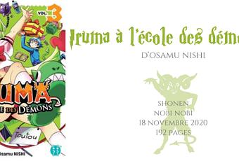 Je remercie les Éditions Nobi Nobi pour l’envoi de cette lecture. Iruma à l’école des démons paraît en ce moment au rythme d’un tome par mois et heureusement, car autant vous dire que la fin de chacun des tomes me rend impatiente à chaque fois !